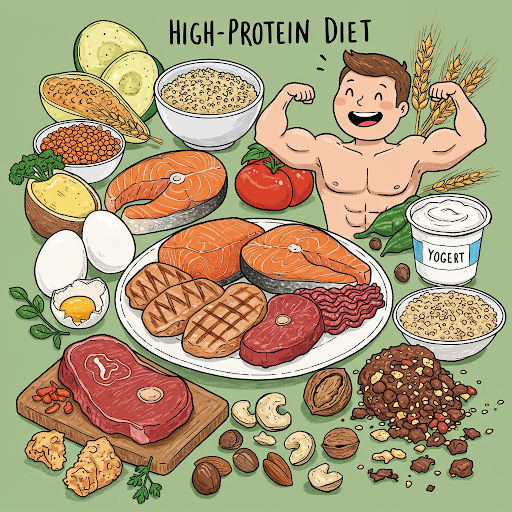 ✔ 고단백 식품: 닭가슴살, 소고기, 돼지고기(기름 적은 부위), 연어, 참치, 계란, 두부