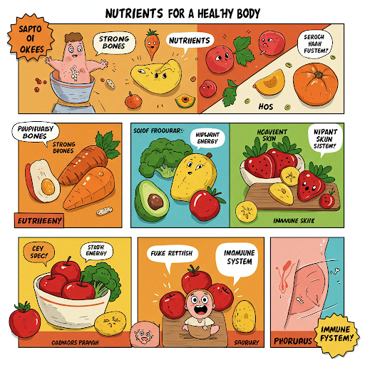 - 칼슘: 뼈와 치아 건강 유지 (우유, 치즈, 브로콜리)