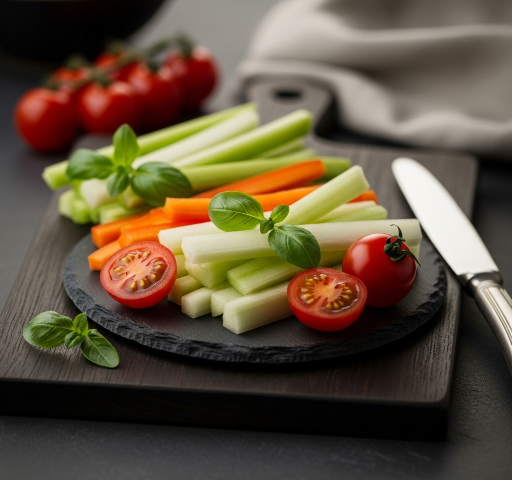칼로리가 매우 낮고 수분과 식이섬유, 비타민이 풍부한 채소는 야식으로 더할 나위 없이 좋아요. 아삭한 식감 덕분에 입이 심심하지 않고, 갈증 해소에도 탁월합니다. 마요네즈 대신 저칼로리 드레싱이나 간장 베이스 소스를 살짝 곁들이거나 그냥 드시는 것을 추천해요.