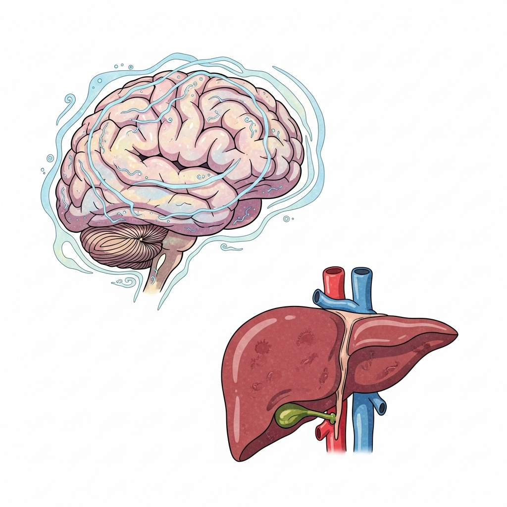 간 기능이 심하게 떨어져 체내에 암모니아와 같은 독소가 축적되고, 이 독소들이 뇌에 영향을 주어 발생하는 의식 장애입니다. 초기에는 가벼운 증상으로 시작해 심하면 혼수 상태에 이를 수 있습니다.